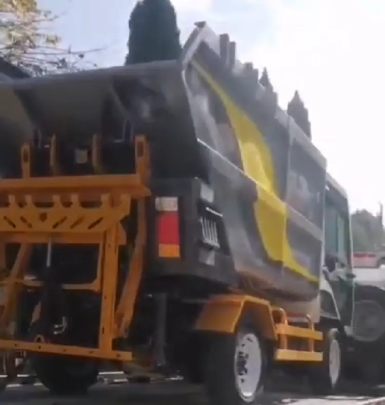 發(fā)往某環(huán)衛(wèi)公司的電動垃圾清運車裝車完畢準備出發(fā)